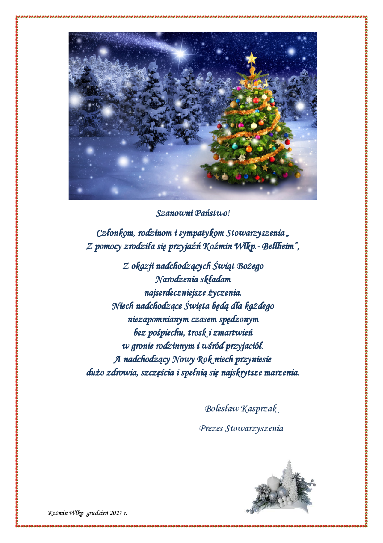 Z okazji Świąt Bożego Narodzenia serdeczne życzenia składa,